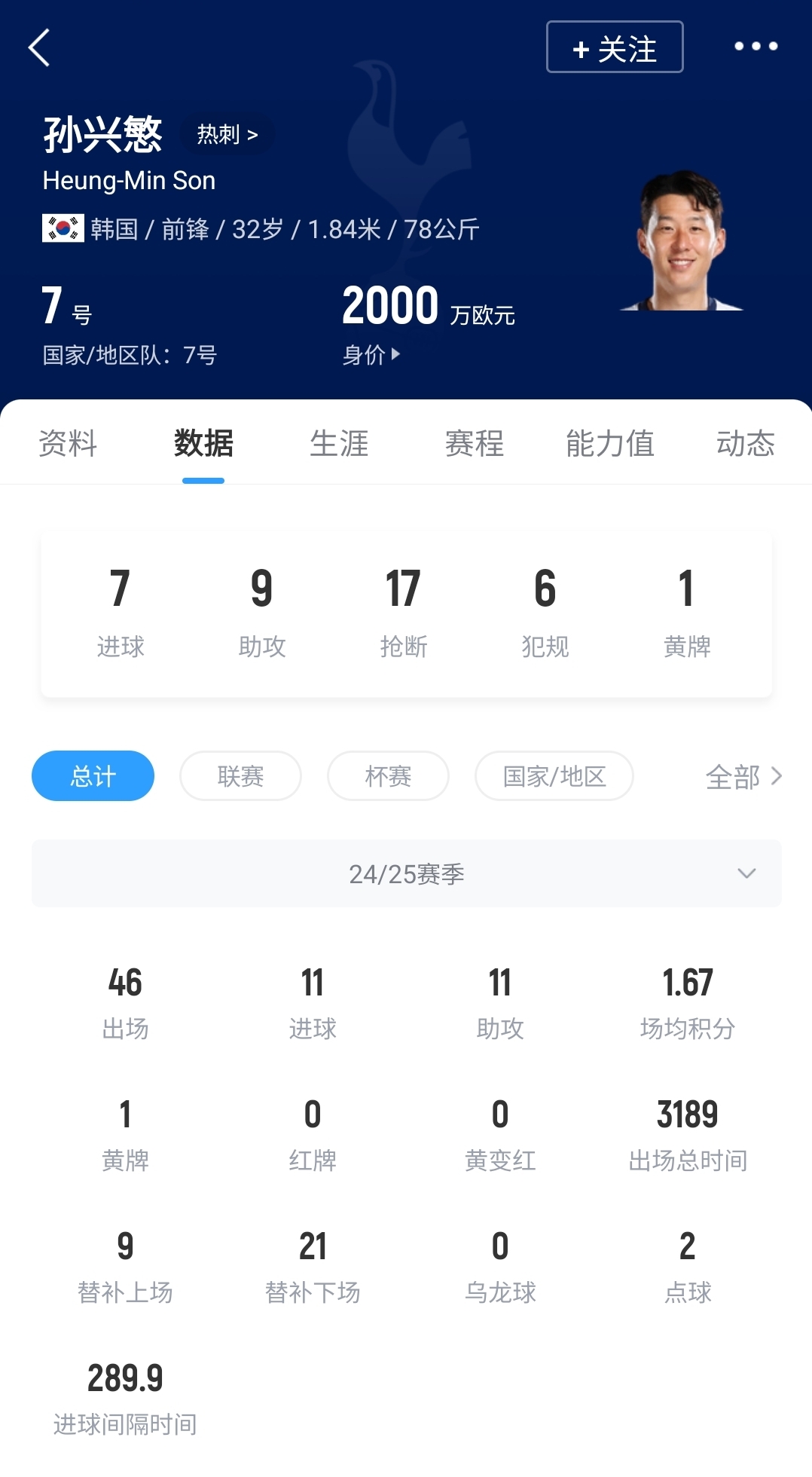 j9九游会老哥俱乐部交流2015年,孙兴慜以3000万欧转会费从勒沃库森加盟热刺,目前共计出战454场比赛,贡献173球101助,本赛季孙兴慜作为队长捧起了欧联杯冠军奖杯,这也是他俱乐部生涯的第一个重要奖杯。